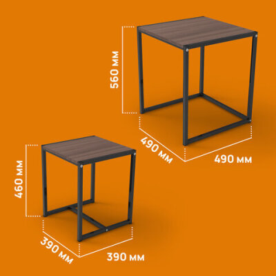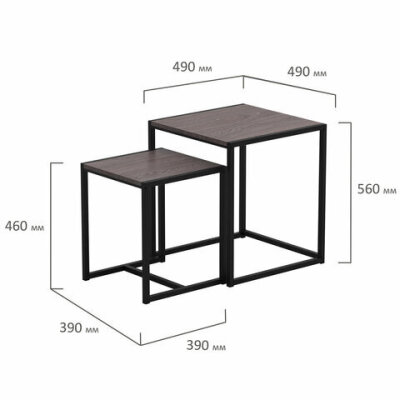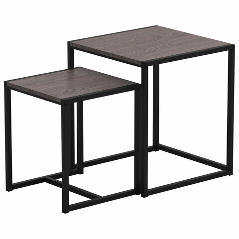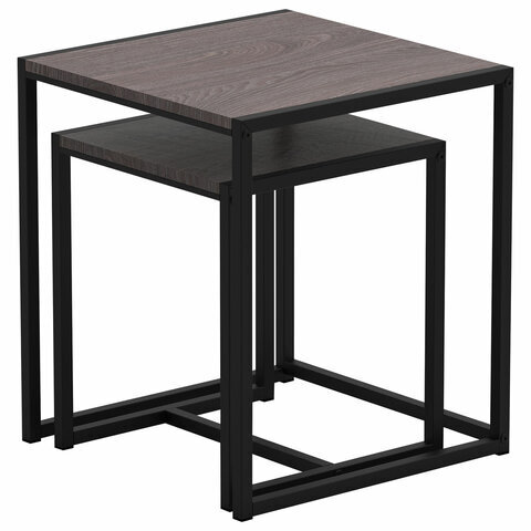 Стол журнальный "Терса", 490х490х560/390х390х460 мм, КОМПЛЕКТ 2 шт., металл/ЛДСП ясень шимо темный