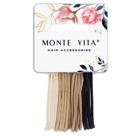 Резинка для волос НАБОР 16 шт., 0,15х14 см, чёрный, коричневый, бежевый, MONTE VITA (МОНТЕ ВИТА), 457036