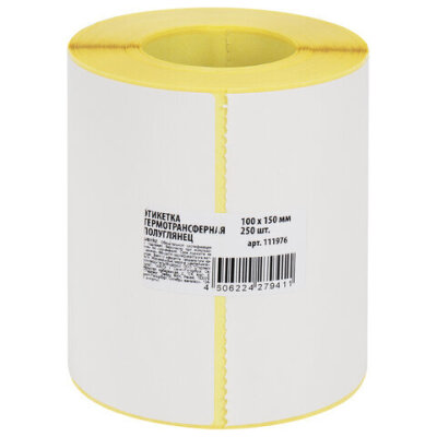 Этикетки термотрансферные, ПОЛУГЛЯНЕЦ, 100х150 мм, 250 этикеток в ролике, 111976