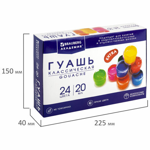 Гуашь BRAUBERG "АКАДЕМИЯ КЛАССИЧЕСКАЯ ЭКСТРА", 24 цвета по 20 мл, 192367