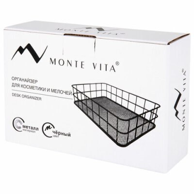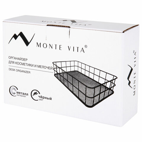 Органайзер-корзинка для косметики и мелочей металлическая MONTE VITA (МОНТЕ ВИТА), 242х162х63 мм, черный, 272482
