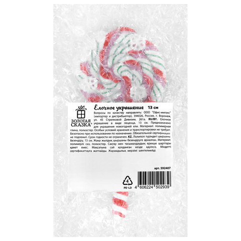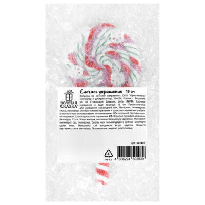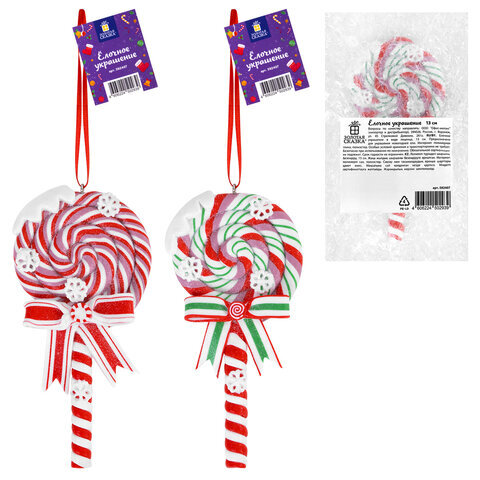 Украшение ёлочное (1 шт.) "Леденцы", 6,5х13 см, полимерная глина, ассорти 2 дизайна, ЗОЛОТАЯ СКАЗКА, 592407