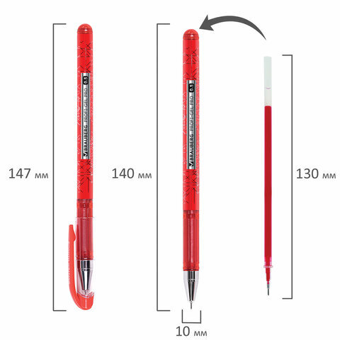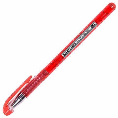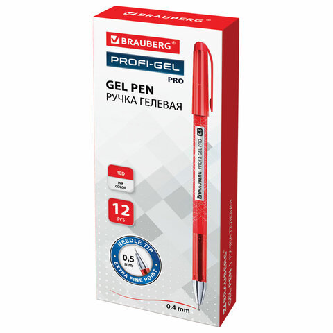 Ручка гелевая BRAUBERG "Profi-Gel PRO", КРАСНАЯ, линия письма 0,4 мм, игольчатый наконечник 0,5 мм, печать на корпусе, 144126