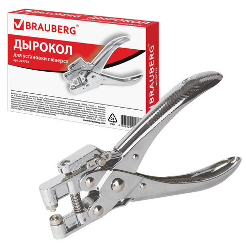 Металлический дырокол BRAUBERG "HL-1" предназначен для пробивания отверстий с установкой металлического ободка (люверса).