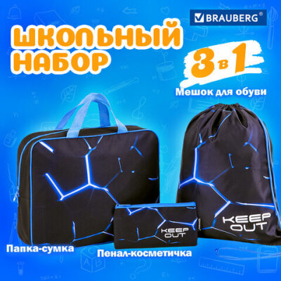 Папка на молнии с ручками А4, мешок для обуви 42х33 см, пенал 20х10 см, "Digital lava", НАБОР BRAUBERG, 272102