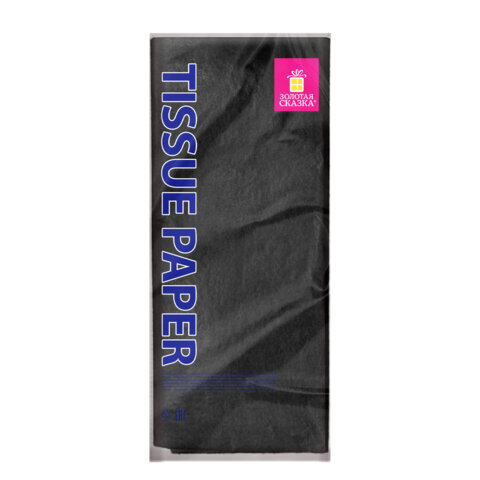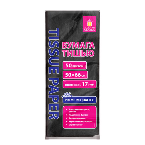 Цветная бумага ТИШЬЮ 17 г/м2, 50х66 см, 50 листов, черная, ЗОЛОТАЯ СКАЗКА, 116492