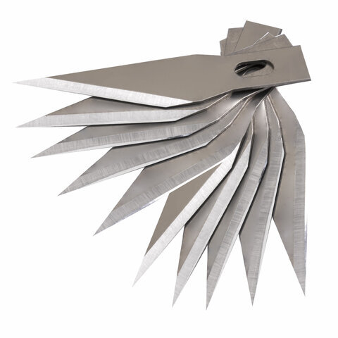 Нож макетный (скальпель) STAFF, 11 лезвий в комплекте, металлический корпус, блистер, 238257