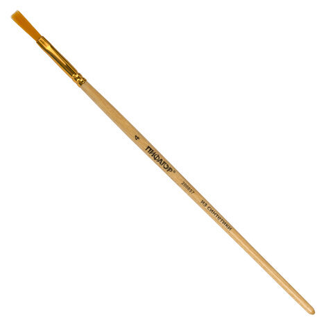 Кисть ПИФАГОР, СИНТЕТИКА, плоская, № 4, деревянная лакированная ручка, с колпачком, 200857