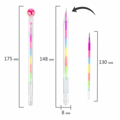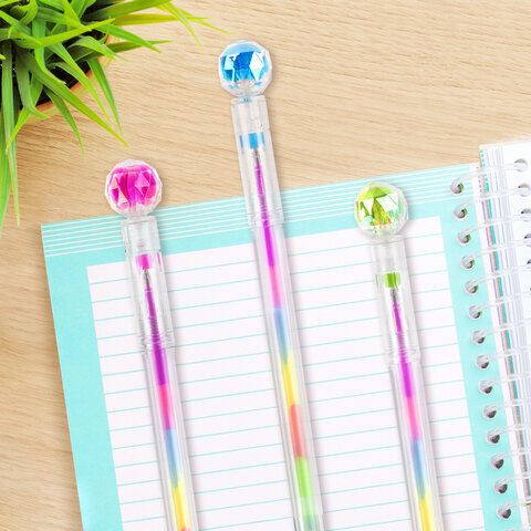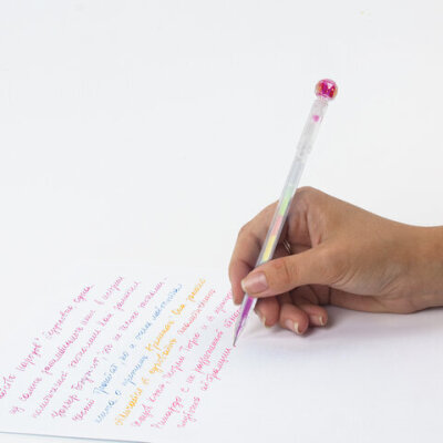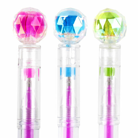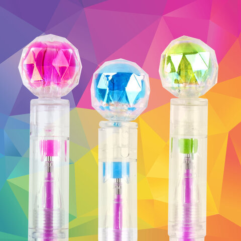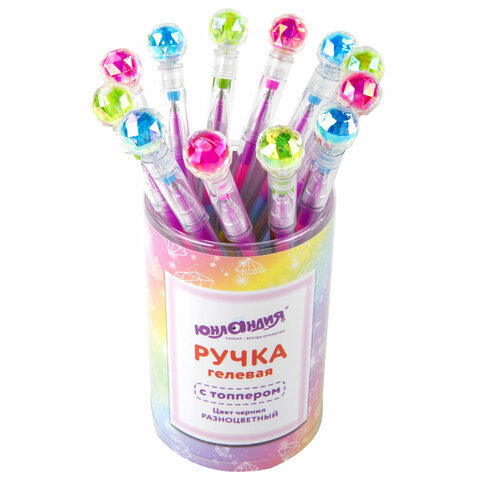Ручка с топпером гелевая ЮНЛАНДИЯ "Хрустальный шар", ассорти, РАДУЖНЫЕ чернила, игольчатый пишущий узел 0,7 мм, 143785