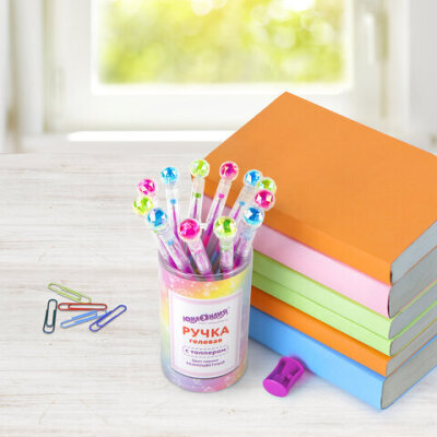 Гелевая ручка масляная ЮНЛАНДИЯ "Хрустальный шар" с милой игрушкой на корпусе.