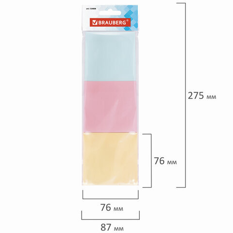 Блок самоклеящийся (стикеры) BRAUBERG, ПАСТЕЛЬНЫЙ, 76х76 мм, 3 цвета х 50 листов, 124808