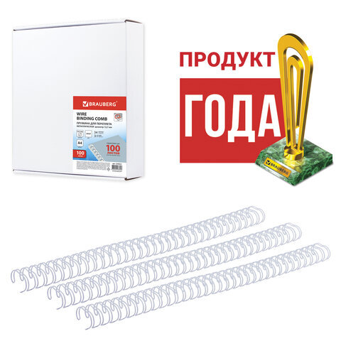 Пружины металлические для переплета, КОМПЛЕКТ 100 штук, 12,7 мм (для сшивания 80-100 листов), белые, BRAUBERG, 530823