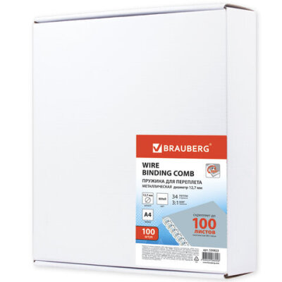 Металлическая пружина для переплета документов BRAUBERG совместима с переплетными машинами для металлических пружин. Преимуществом является эстетичный внешний вид и возможность раскрывать документ на 360 градусов.