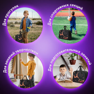 Сумка для внешкольных занятий BRAUBERG с ручками подходит как для сменной обуви, так и для физкультурной формы и сменной одежды для факультативных и спортивных занятий.