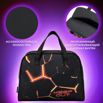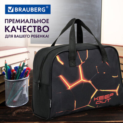 Сумка для занятий BRAUBERG с ручками, 35x25x15 см, "Keep out", 272378