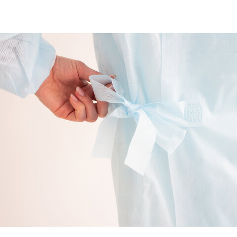 Халат хирургический стерильный ГЕКСА комфортен в применении и предназначен для работы в операционных, смотровых и процедурных кабинетах, для проведения малоинвазивных процедур. Ворот халата на застежке "велькро", четыре завязки, рукав на манжете.