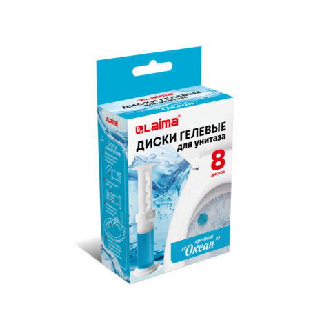 Диски гелевые, освежитель и очиститель для унитаза / писсуара, 8 дисков 44 г, LAIMA, "Океан", шприц, 609796
