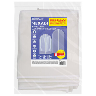Чехлы для хранения одежды на молнии, КОМПЛЕКТ 12 шт. + 1 в подарок, SHAMAANI (ШАМААНИ), 609599