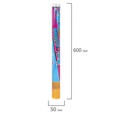 Пневматическая хлопушка не является пиротехникой и работает на основе энергии сжатого воздуха. Конфетти и серпантин ярких цветов можно использовать в помещении или на улице. Хлопушка подойдет для праздников, концертов, реквизита для фотосессии.
