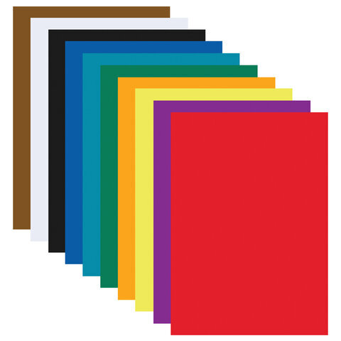 Картон цветной А4 МЕЛОВАННЫЙ, 10 листов, 10 цветов, в папке, ЮНЛАНДИЯ, 200х290 мм, 113548