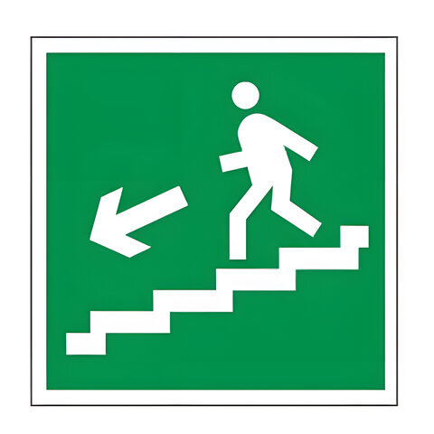 Знак эвакуационный "Направление к эвакуационному. выходу по лестнице налево вниз" изготовлен в соответствии ГОСТ, отраслевыми нормами, правилами и инструкциями.