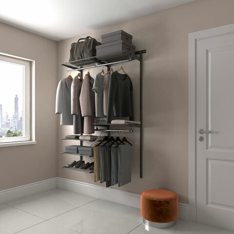 Гардеробная система OPTIMA G120, 2050х1240х450 мм, 6 полок, 3 штанги, графит, S70299916515