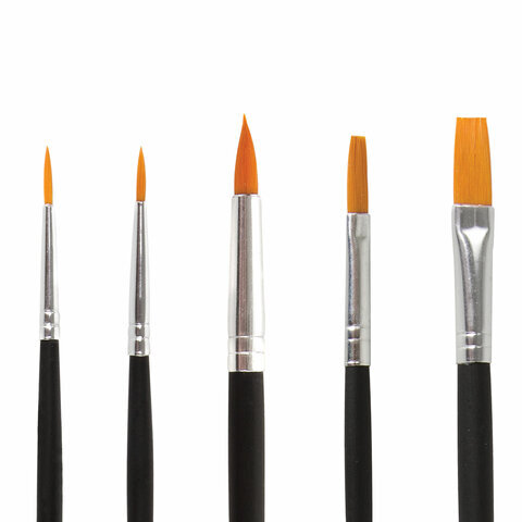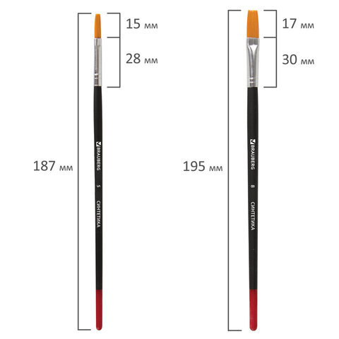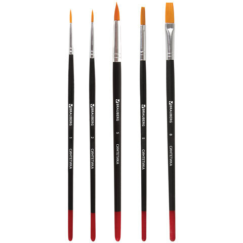 Кисти BRAUBERG, набор 5 шт. (синтетика, круглые № 1, 2, 5, плоские № 5, 8), блистер, 200219