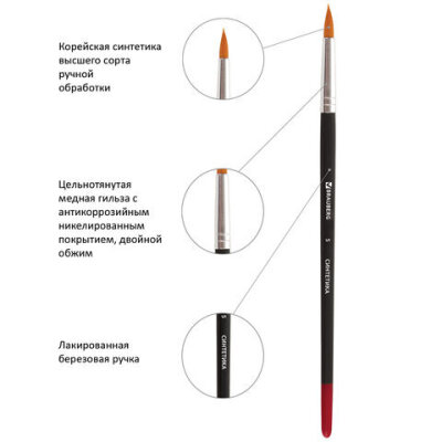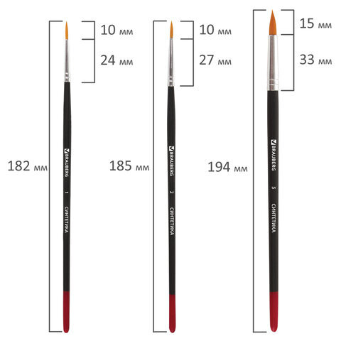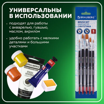 Высококачественный набор синтетических кистей BRAUBERG это отличная замена натуральным кистям. Подходят для работы с любыми видами красок.