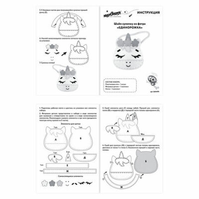 Набор для шитья сумочки из фетра "Единорожка", ЮНЛАНДИЯ, 664494