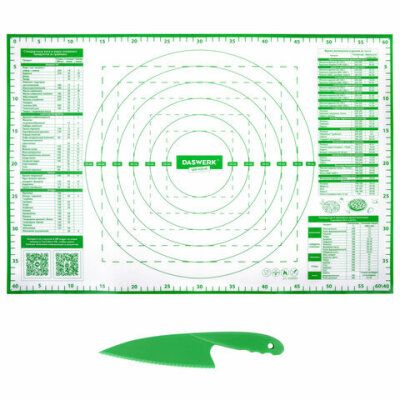 Коврик силиконовый для раскатки/запекания 40х60 см, зеленый, ПОДАРОК пластиковый нож, DASWERK (ДАСВЕРК), 608426