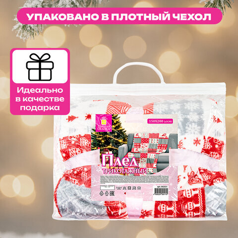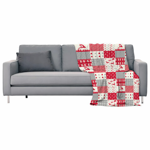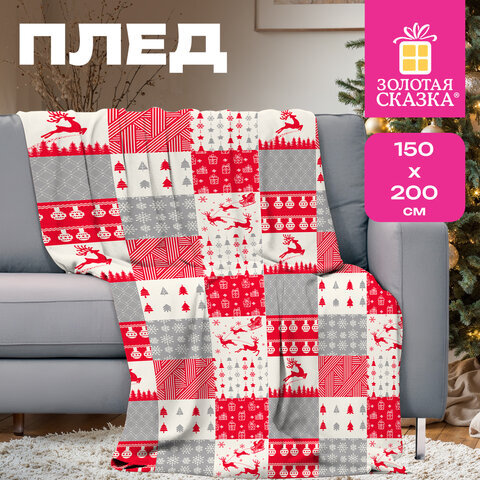 Плед новогодний 150х200 см, "Лоскутки", полиэстер, 210 г/м2, ЗОЛОТАЯ СКАЗКА, 592531