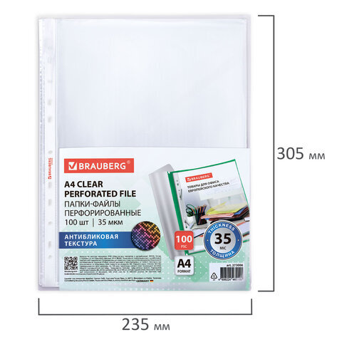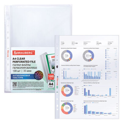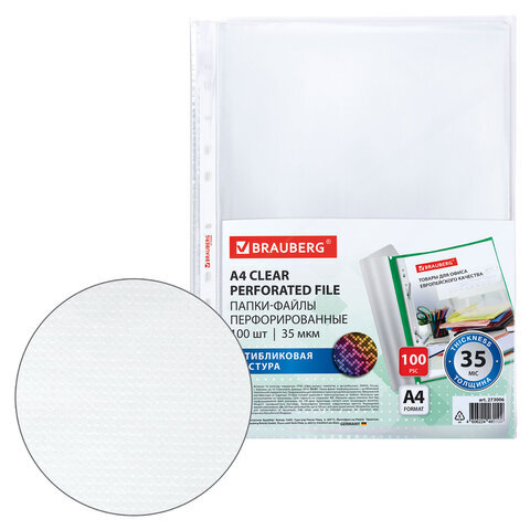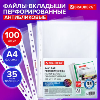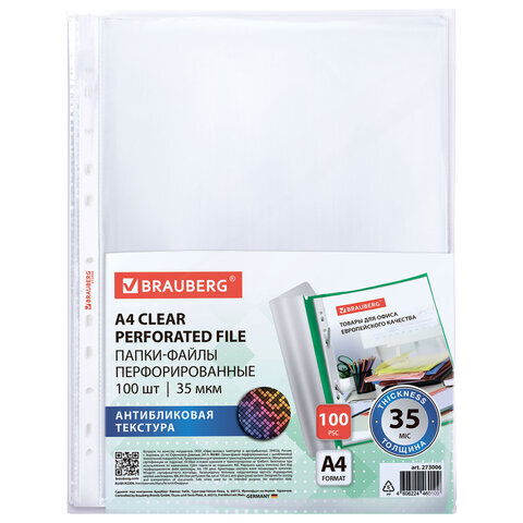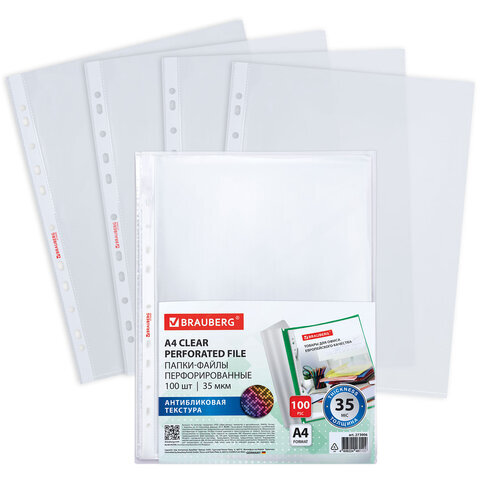 Перфорированные папки-файлы BRAUBERG предназначены для хранения и защиты бумажных документов от загрязнения и механических повреждений.
