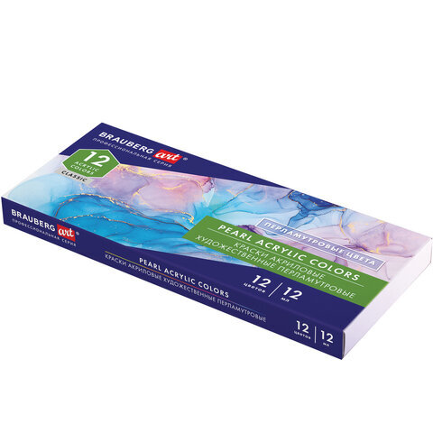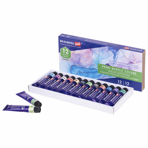 Краски акриловые художественные ПЕРЛАМУТРОВЫЕ, НАБОР 12 цветов в тубах по 12 мл, BRAUBERG ART CLASSIC, 192243