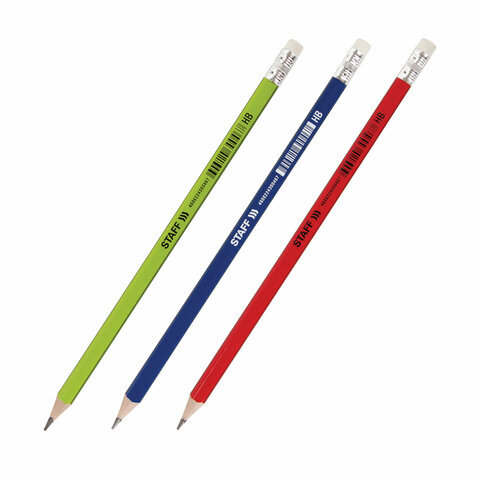Карандаш чернографитный STAFF "Basic" BLP-744, 1 шт., НВ, с ластиком, пластик, корпус ассорти, 181744