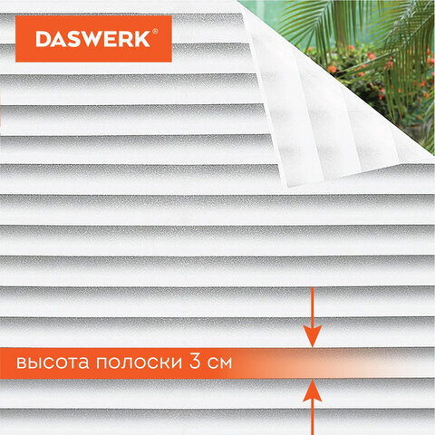 Оконная пленка DASWERK эффективно защищает помещения, мебель или растения от избыточного ультрафиолетового излучения, а также обеспечивает необходимую приватность и защиту от постороннего внимания.