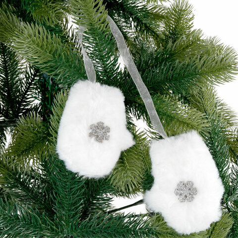 Оригинальным решением украсить новогоднюю ель станут елочные украшения ЗОЛОТАЯ СКАЗКА, выполненные в виде пары пушистых варежек. Это идеальный выбор для тех, кто хочет добавить в свой праздничный декор нотку волшебства и теплоты.