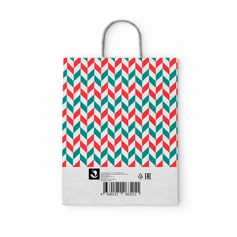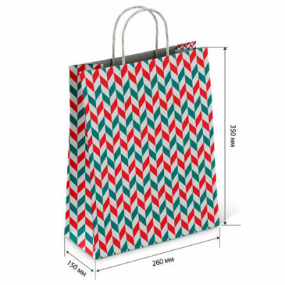 Крафт-пакет бумажный "Зигзаг" 26х15х35 см, с кручеными ручками, плотность 100 г/м2, белый, 113211