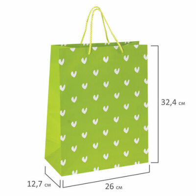 Пакет подарочный (1 штука) 26x13x32 см, ЗОЛОТАЯ СКАЗКА "Зеленый в галочку", ламинированный, 606603