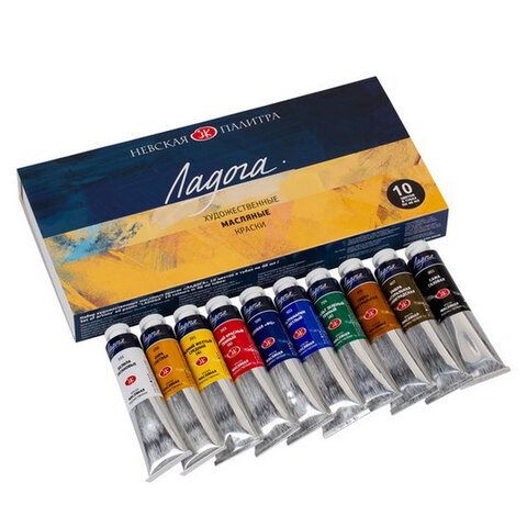 Краски масляные художественные "Ладога", НАБОР 10 цветов по 46 мл, в тубах, Невская Палитра, 1241006