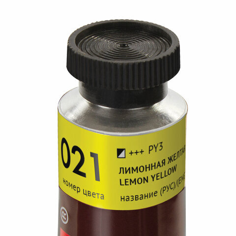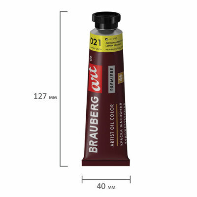 Краска масляная художественная BRAUBERG ART PREMIERE, 46 мл, проф. серия, ЛИМОННАЯ ЖЕЛТАЯ, 191398