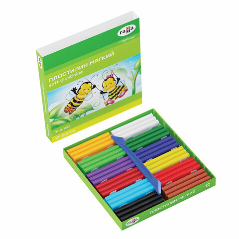 Пластилин восковой ГАММА "Пчелка", 12 цветов, 180 г, со стеком, картонная упаковка, 280032Н