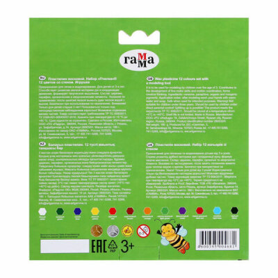 Пластилин ГАММА с увеличенным содержанием воска обладает отличными пластическими свойствами, не пачкает руки. Отличается красочной удобной упаковкой. Со стеком в наборе.