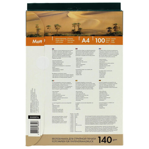 Фотобумага матовая, А4, 140 г/м2, односторонняя, 100 листов, LOMOND, 0102074