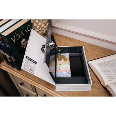 Ящик из прочной стали с ключевым замком BRAUBERG. Используется для ограничения доступа посторонних лиц. Незаметен на книжной полке дома и в офисе. Отлично подойдет в качестве подарка или сувенира.