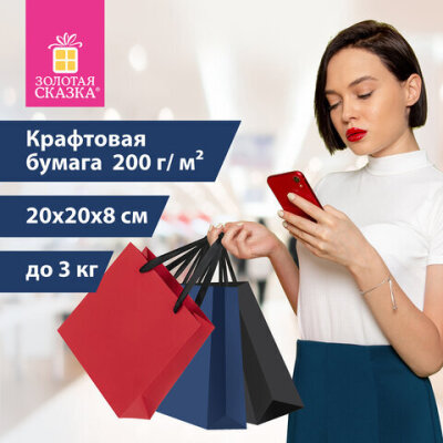 Пакет подарочный НАБОР 3 штуки 20х20х8 см, ЗОЛОТАЯ СКАЗКА "Business Kraft", крафтовая бумага, 608254