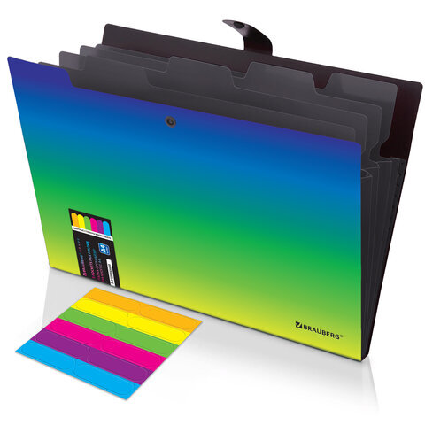 Папка-органайзер на кнопке 5 отделений, BRAUBERG GRADE, A4, зелено-голубой градиент, 274092