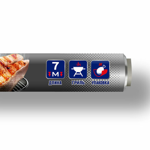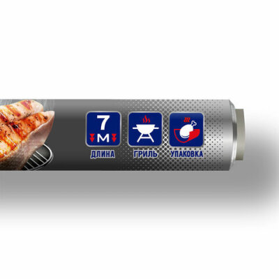 Фольга пищевая 44 см х 7 м, 20 мкм ЭКСТРА ПРОЧНАЯ, САЯНСКАЯ ФОЛЬГА в пленке, "ГРИЛЬ" 7П-440х15