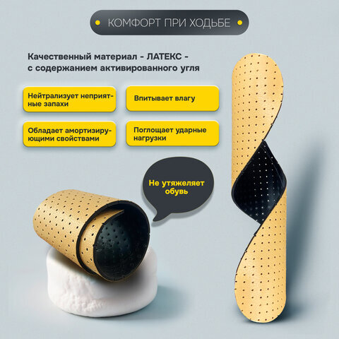 Стельки для обуви ВЛАГОВПИТЫВАЮЩИЕ, УНИВЕРСАЛЬНЫЙ размер RU 34-45 / EU 35-46, с линиями выреза, SHEGRA (ШЕГРА), 700735
