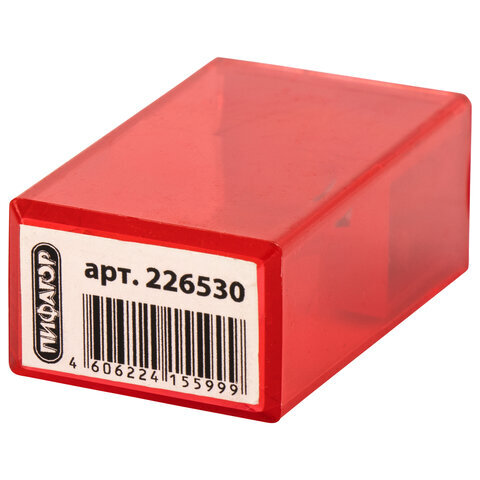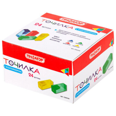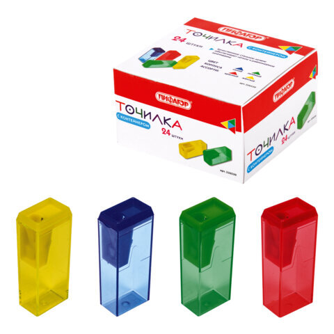 Точилка ПИФАГОР, с контейнером, прямоугольная, пластиковая, тонированный корпус, ассорти, 226530