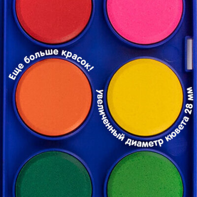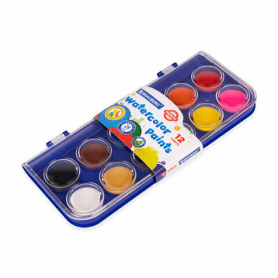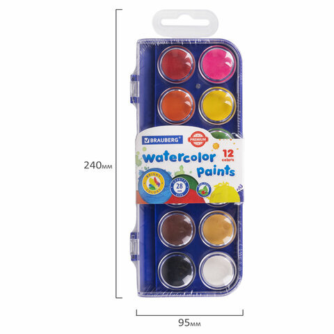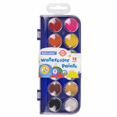 Краски акварельные BRAUBERG "PREMIUM" 12 цветов, круглые кюветы 28 мм, пенал, 191743